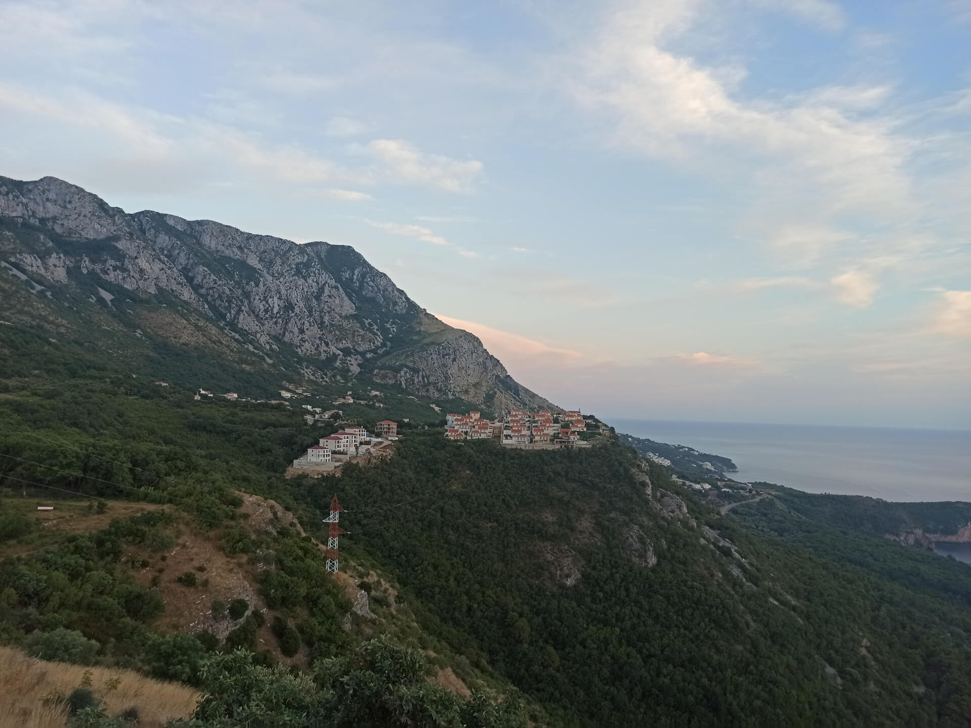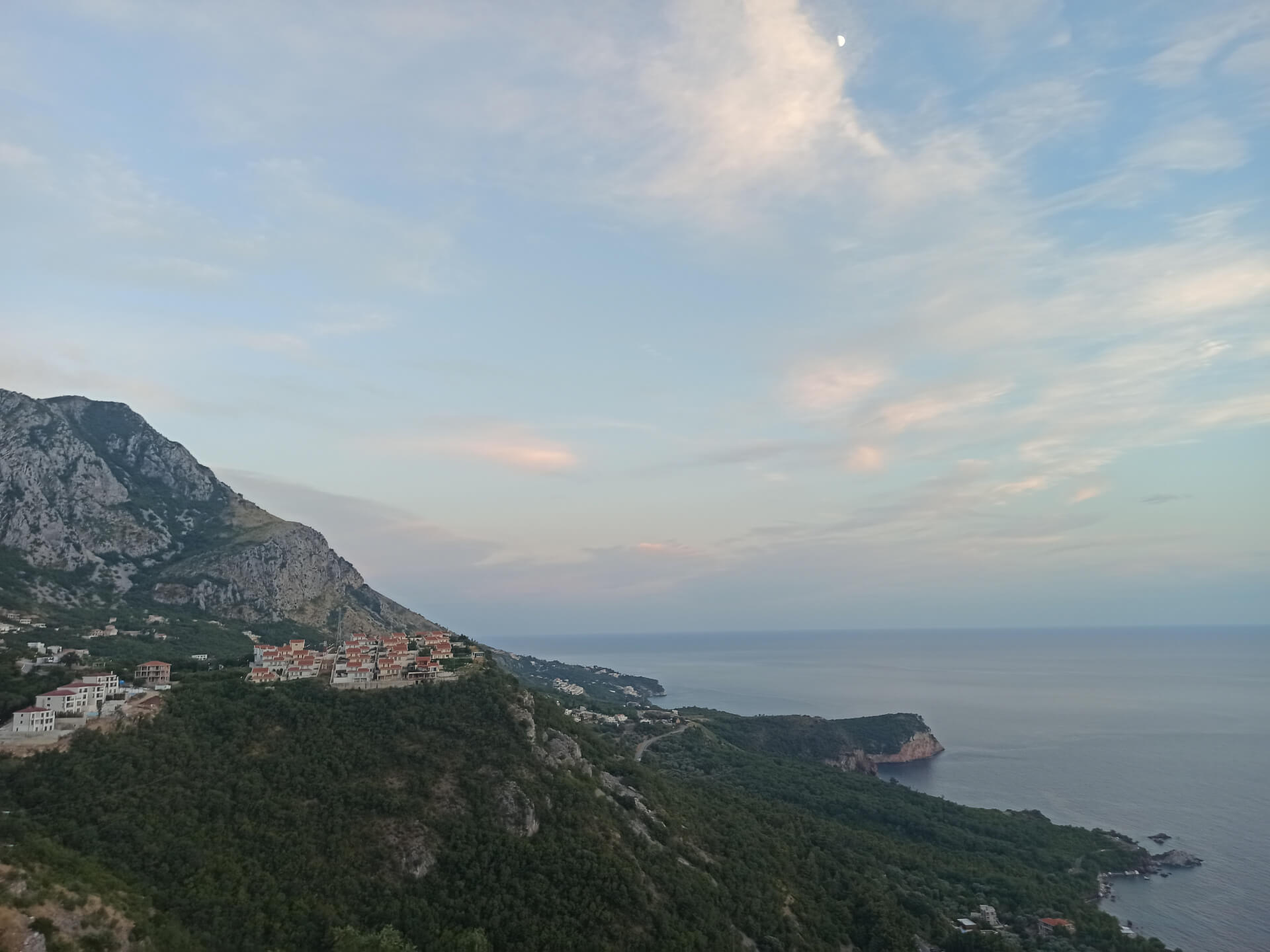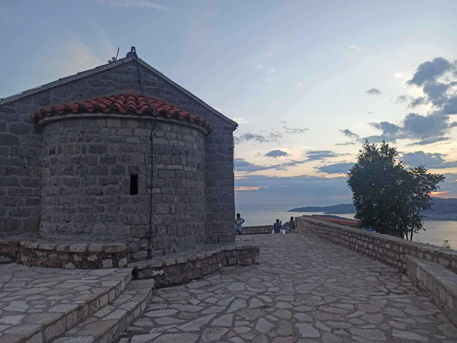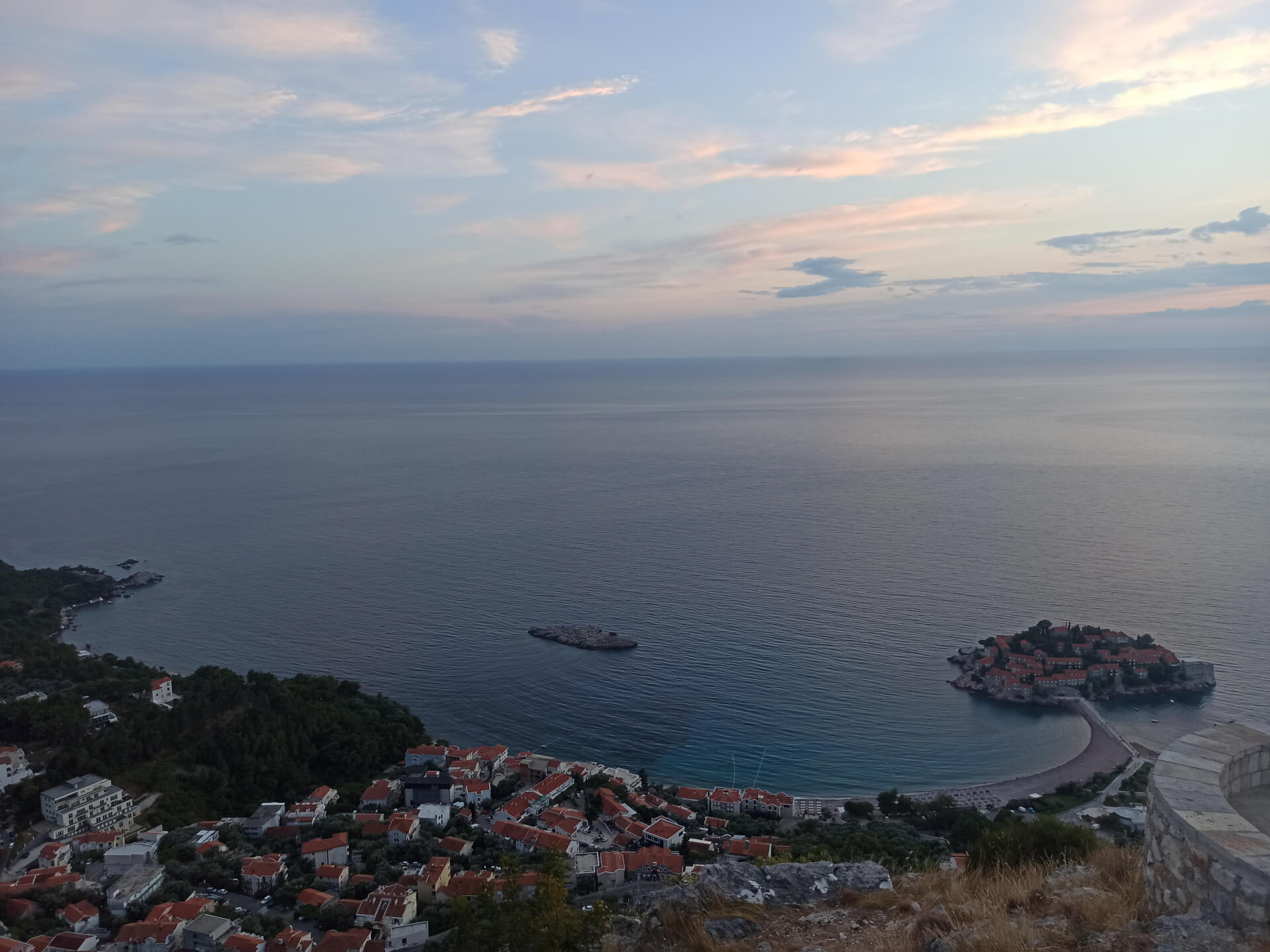 Budva city and Budvanska Riviera. You need to drive about 2,2 km from the Adriatic highway to the mountain to be able to see this fantastic viewpoint. There is a small Serbian orthodox church of St.Sava and the viewpoint is located on its territory.