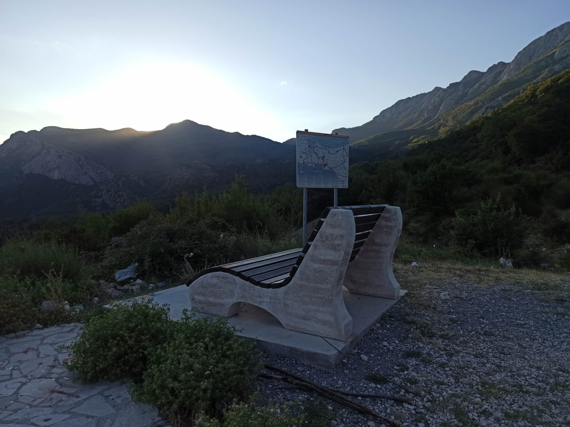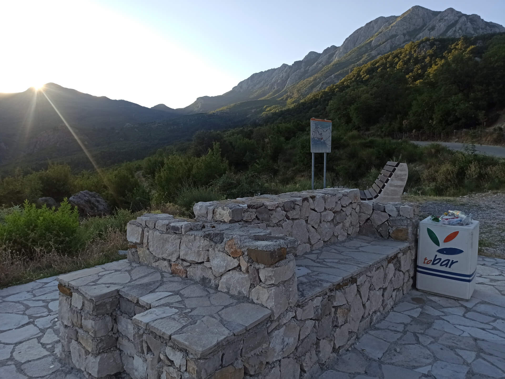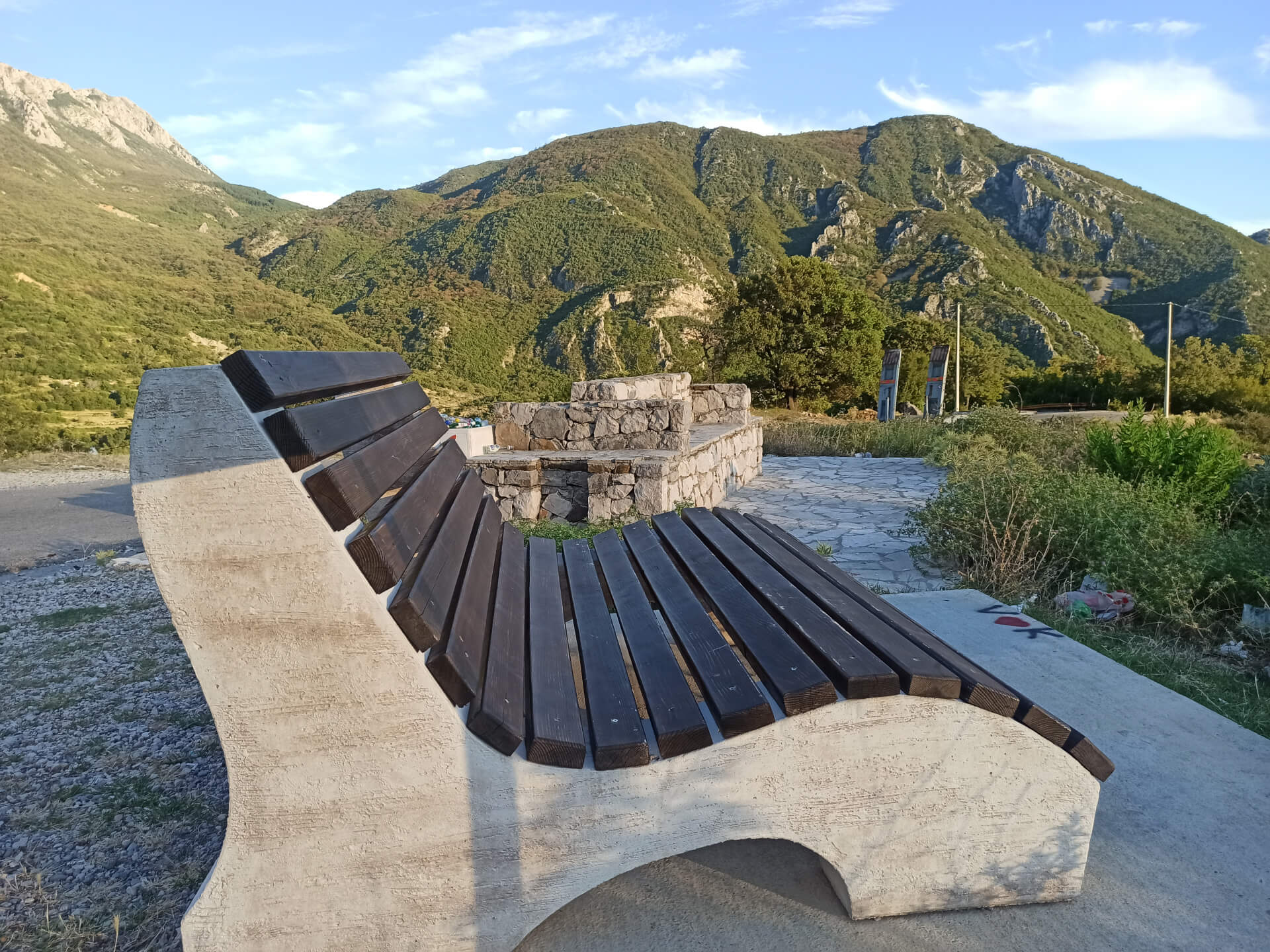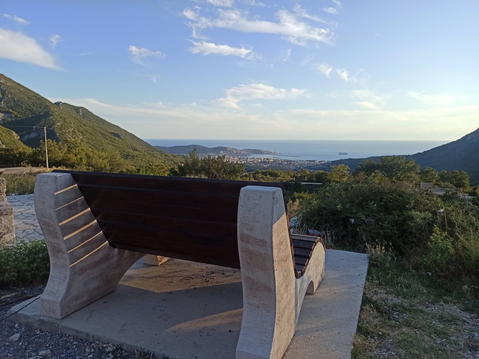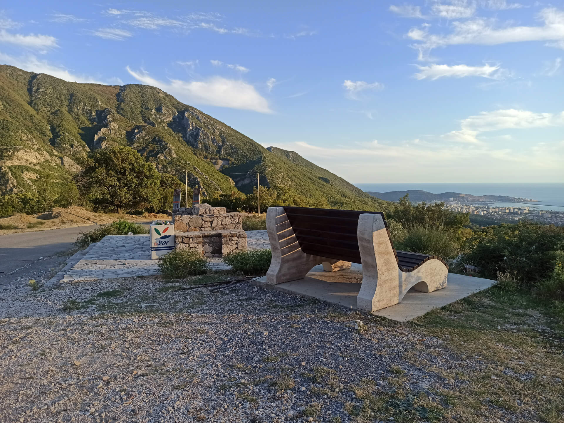 National Park Skadar Lake). There are not many cars on the road and not many houses around. You can fully enjoy peace around sitting at comfortable bench and watching breathtaking view to Bar city and Adriatic sea. Beautiful nature with gorgeous mountains surround the area. You have everything there with info stand and little parking.
